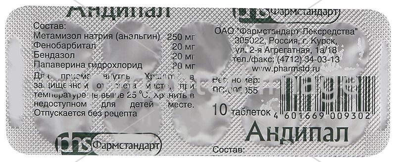 Производит Андипал 10 шт таблетки компания Фармстандарт-Томскхимфарм ОАО. Само производство расположено в стране Россия.