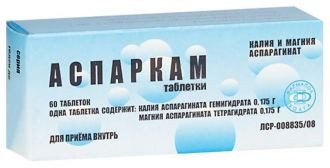 Если Вас заинтересовал этот товар, обратите внимание на его аналоги: Аспаркам-l 10мл 10 шт. раствор для инъекций, Аспаркам-l 5 мл 10 шт. раствор для внутривенного введения, Панангин 50 шт. таблетки покрытые пленочной оболочкой, Панангин форте 60 шт. таблетки покрытые пленочной оболочкой, Аспаркам авексима 56 шт. таблетки, Аспаркам-убф 50 шт. таблетки, Панаспар 316мг+280мг 50 шт. таблетки покрытые пленочной оболочкой.