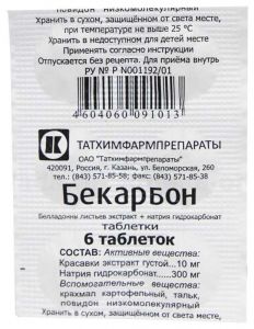 Производит Бекарбон 6 шт таблетки татхимфарм компания Татхимфармпрепараты АО. Само производство расположено в стране Россия.