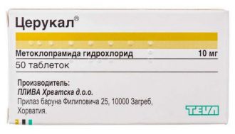 Производит Церукал 10мг 50 шт таблетки компания Тева. Само производство расположено в стране Хорватия.