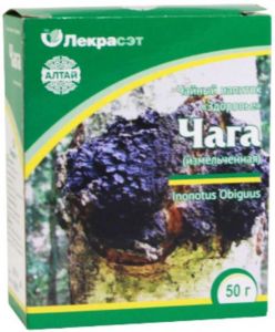 Склад, форма випуску та упаковкаСировина – 1 г: березовий гриб (чага). 50 г - Пакети паперові (1) - пачки картонні.Опис лікарської формиСировина рослинна подрібнена.Фармакотерапевтична групаЗасіб з фітопатогенного гриба інонотуса скошеного (трутовик косотрубчастий, косяк трутовик), що розвивається у формі наростів на стовбурах берези. Основними діючими речовинами є пігменти, що утворюють хромогенний поліфенолкарбоновий комплекс (20%) у поєднанні з полісахаридами (6-8%), агарициновою і гуміноподібною кислотами. Тонізуючий вплив на ЦНС та імуномодулюючі властивості забезпечують підвищення стійкості організму до гіпоксії та інших несприятливих впливів. Наявність міді, марганцю, кобальту забезпечує стимулюючий вплив на кровотворення, особливо лейкопоезу. Препарати березового гриба мають гастропротекторну дію, нормалізують функції травних залоз. Підвищення функціональної активності імунної системи, особливо функції природних клітин-кілерів, визначає, мабуть,протипухлинні властивості березового грибаКлінічна фармакологіяФітопрепарат із загальнозміцнюючою та імуностимулюючою дією.Показання до застосуванняДискінезія ШКТ за гіпотонічним типом, виразкова хвороба шлунка та дванадцятипалої кишки, хронічні гастрити; астенічні стани, кахексія, післяопераційний період, тривала імуносупресивна терапіяПротипоказання до застосуванняПідвищена чутливість до препаратів березового гриба.Побічна діяМожливо: алергічні реакції.Спосіб застосування та дозиПриймають усередину. Курс лікування становить 1-5 місяців. При необхідності курс лікування повторюють після 7-10-денної перерви.Запобіжні заходи та особливі вказівкиПри лікуванні препаратами березового гриба показано молочно-рослинну дієту з винятком консервів, гострих приправ, тваринних жирів. Протипоказане застосування пеніциліну, внутрішньовенне введення декстрози. Можливе застосування у комплексній терапії при пухлинних захворюваннях для покращення процесів кровотворення та травлення.Умови відпустки з аптекБез рецептаВідео на цю тему