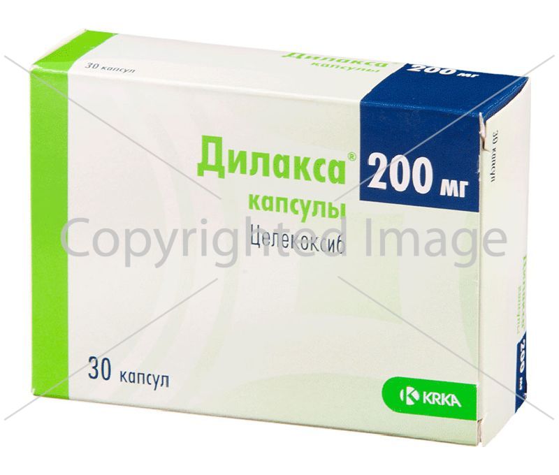 Склад, форма випуску та упаковкаКапсули - 1 капс. Активна речовина: целекоксиб 200мг; Допоміжні речовини: лактоза безводна – 86.26 мг, тальк – 14 мг, кроскармелоза натрію – 3.87 мг, кремнію діоксид колоїдний – 3.87 мг, натрію лаурилсульфат – 2 мг; склад кришечки капсули: барвник діамантовий блакитний - 0.195%, титану диксид - 2.357%,метилпарагідроксибензоат - 0.8%, пропілпарагідроксіензоат - 0.2%, натрію лаурилсульфат - 0.1%, желатин - до 10 склад корпусу капсули: титану діоксид – 3%, матілпарагідроксибензоат – 0.8%, пропілпарагідроксибензоат – 0.2%, натрію лаурилсульфат – 0.1%, желатин – до 100%. Капсули 10шт. по 200мг. в блістері з алюмінію/ПВХ, 3 блістери в картонній пачці.Опис лікарської формиКапсули тверді, желатинові, розмір 1, кришечка – синього кольору, корпус – майже білого; вміст капсул – порошок білого або майже білого кольору.Фармакотерапевтична групаПротизапальне, знеболювальне, жарознижувальне.ФармакокінетикаВсмоктування. При прийомі натще добре всмоктується, досягаючи максимальної концентрації (Сmах) у плазмі приблизно через 2-3 години. Стах у плазмі після прийому 200 мг - 705 нг/мл. Абсолютна біодоступність не досліджувалася. Схах, ​​і площа під фармакокінетичною кривою "концентрація-час" (AUC) приблизно пропорційні прийнятій дозі в діапазоні доз до 200 мг 2 рази на добу; при застосуванні препарату у вищих дозах ступінь підвищення Сmах та AUC відбувається менш пропорційно. Вплив їди. Прийом целекоксибу разом з жирною їжею збільшує час досягнення Смах приблизно на 4 години і підвищує повне всмоктування приблизно на 20%. Розподіл. Зв'язок із білками плазми не залежить від концентрації та становить близько 97%, не зв'язується з еритроцитами крові. Препарат проникає через гематоенцефалічний бар'єр. Метаболізм. Целекоксиб метаболізується в печінці шляхом гідроксилювання, окиснення та частково глюкуронування. Метаболізм здебільшого протікає за участю цитохрому Р450 CYP2C9. Метаболіти, що виявляються в крові, фармакологічно неактивні щодо ЦОГ-1 та ЦОГ-2. Активність цитохрому Р450 CYP2C9 знижена у осіб з генетичним поліморфізмом, таким як гомозиготний CYP2C9*3 поліморфізм, що веде до зменшення ефективності ензимів. Виведення. Целекоксиб метаболізується в печінці, виводиться з калом та сечею у вигляді метаболітів (57% та 27% відповідно), менше 1% прийнятої дози – у незміненому вигляді. При повторному застосуванні період напіввиведення становить 8-12 годин, а кліренс становить близько 500 мл/хв. При повторному застосуванні рівноважні концентрації у плазмі досягаються до 5-го дня. Варіабельність основних фармакокінетичних параметрів (AUC, Сmах, період напіввиведення) становить близько 30%. Середній обсяг розподілу в рівноважному стані дорівнює приблизно 500 л/70 кг у молодих здорових дорослих людей, що вказує на широке розподілення целекоксибу в тканині.ФармакодинамікаНПЗЗ. Є селективним інгібітором ЦОГ-2, завдяки цьому блокує утворення запальних простаноїдів. У терапевтичних концентраціях у людини целекоксиб не інгібує ЦОГ-1, отже, не впливає на простаноїди, що синтезуються за рахунок активації ЦОГ-1. Критерії визначення специфічності по відношенню до ЦОГ-2 включають відсутність побічних явищ, обумовлених дією ЦОГ-1, особливо виразкових уражень шлунка і дванадцятипалої кишки, серйозних ускладнень з боку верхніх відділів ШКТ (кровотеч, перфорацій, обструкції пілоричного отвору) -2-зал