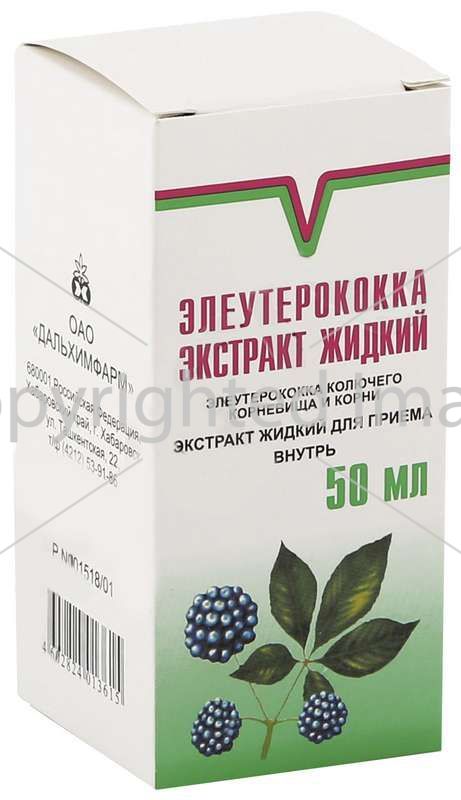 Производит Элеутерококка экстракт 50мл дальхимфарм компания Дальхимфарм ОАО. Само производство расположено в стране Россия.