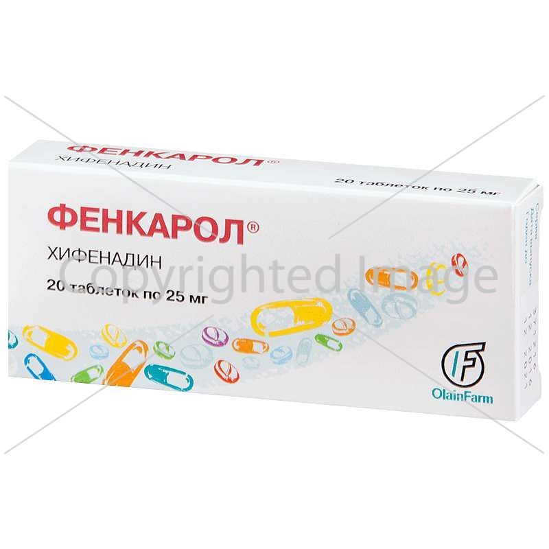 Производит Фенкарол 25мг 20 шт таблетки компания Олайнфарм. Само производство расположено в стране Латвия.