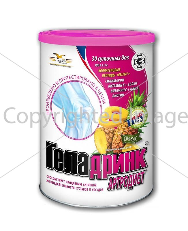 Производит Геладринк артродиет ананас 390г компания Орлинг. Само производство расположено в стране Чехия.