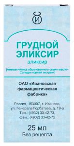 Производит Грудной эликсир 25мл компания Ивановская фармацевтическая фабрика. Само производство расположено в стране Россия.