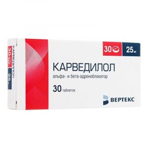Производит Карведилол-вертекс 25мг 30 шт таблетки компания Вертекс АО. Само производство расположено в стране Россия.