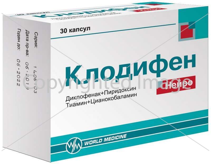 Производит Клодифен нейро 30 шт капсулы компания Уорлд Медицин Лимитед. Само производство расположено в стране Болгария.