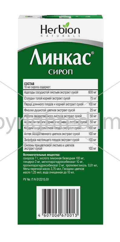Производит Линкас 90мл сироп компания Хербион Пакистан. Само производство расположено в стране Пакистан.