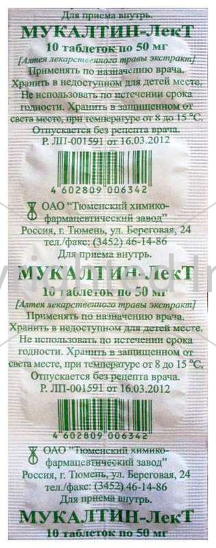 Мукалтин-лект 50мг 10 шт таблетки