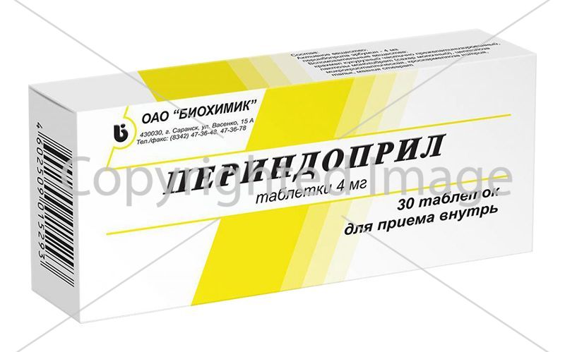 Склад, форма випуску та упаковкаВ 1 таблетці міститься активна речовина: периндоприл 4 мг. У упаковці 30 штук.Опис лікарської формиБілі або білі з кремуватим/жовтим відтінком, допустима незначна мармуровість, плоскоциліндричні, з фаскою.Фармакотерапевтична групаІнгібітор АПФ. Є проліками, з яких в організмі утворюється активний метаболіт периндоприлат. Вважають, що механізм антигіпертензивної дії пов'язаний з конкурентним інгібуванням активності АПФ, яке призводить до зниження швидкості перетворення ангіотензину I на ангіотензин II, що є потужною судинозвужувальною речовиною. Внаслідок зменшення концентрації ангіотензину II відбувається вторинне збільшення активності реніну плазми за рахунок усунення негативного зворотного зв'язку при вивільненні реніну та пряме зниження секреції альдостерону. Завдяки судинорозширювальній дії, зменшує ОПСС (постнавантаження), тиск заклинювання в легеневих капілярах (переднавантаження) та опір у легеневих судинах; підвищує хвилинний об'єм серця та толерантність до навантаження. Гіпотензивний ефект розвивається протягом першої години після прийому периндоприлу, досягає максимуму через 4-8 годин та триває протягом 24 годин. У клінічних дослідженнях при застосуванні периндоприлу (монотерапія або у комбінації з діуретиком) показано значне зниження ризику виникнення повторного інсульту (як ішемічного, так і геморагічного), а також ризику фатальних або призводять до інвалідності інсультів; основних серцево-судинних ускладнень, включаючи інфаркт міокарда, у т.ч. з летальним кінцем; деменції, пов'язаної з інсультом; серйозні погіршення когнітивних функцій. Дані терапевтичні переваги були відзначені як у пацієнтів з артеріальною гіпертензією, так і при нормальному артеріальному тиску, незалежно від віку, статі, наявності або відсутності цукрового діабету та типу інсульту. Показано, що на фоні застосування периндоприлу третбутиламіну в дозі 8 мг/добу (еквівалентно 10 мг периндоприлу аргініну) у пацієнтів зі стабільною ІХС, відзначається суттєве зниження абсолютного ризику ускладнень, передбачених основним критерієм ефективності (смертність від серцево-судинних захворювань. та/або зупинки серця з подальшою успішною реанімацією на 1.9%. У пацієнтів, які раніше перенесли інфаркт міокарда або процедуру коронарної реваскуляризації, зниження абсолютного ризику склало 2.2% порівняно з групою плацебо. Периндоприл застосовується як у вигляді монотерапії, і у вигляді фіксованих комбінацій з індапамідом, з амлодипіном.ФармакокінетикаПісля прийому периндоприл швидко абсорбується з ШКТ. Cmax досягається через 1 год. Біодоступність становить 65-70%. У процесі метаболізму периндоприл біотрансформується з утворенням активного метаболіту – периндоприлату (близько 20%) та 5 неактивних сполук. Cmax периндоприлату у плазмі досягається між 3 та 5 годинами після прийому. Зв'язування периндоприлату з білками плазми незначне (менше 30%) і залежить від концентрації активної речовини. Vd вільного периндоприлату наближається до 0.2 л/кг. Чи не кумулює. Повторний прийом не призводить до кумуляції та T1/2 відповідає періоду його активності. При вживанні під час їжі метаболізм периндоприлу сповільнюється. T1/2 периндоприлу становить 1 год. Периндоприлат виводиться із організму нирками; T1/2 його вільної фракції становить 3-5 
