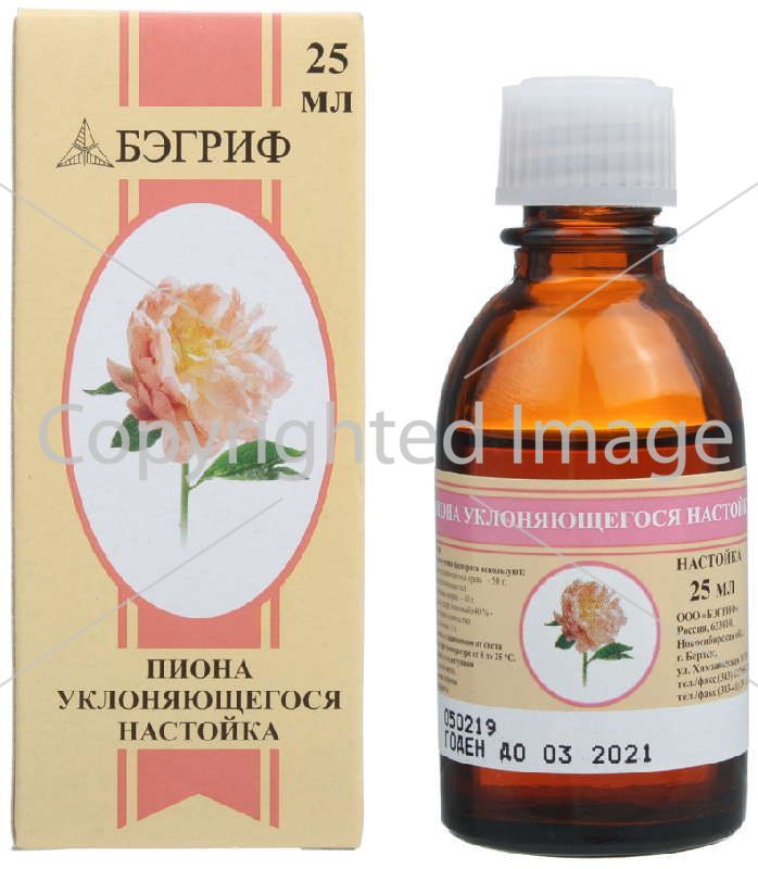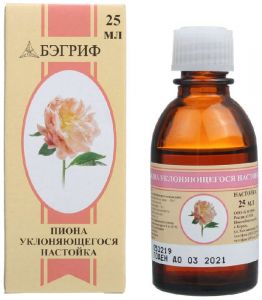 Производит Пион 25мл настойка компания Бэгриф. Само производство расположено в стране Россия.