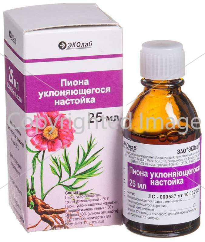 Настойка - 100 мл: трава півонії, що ухиляється 5 г, кореневища і коріння півонії, що ухиляється 5 г.