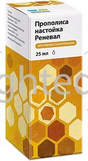 Активний компонент: Прополіс – 100 г; Допоміжна речовина: Етанол (спирт етиловий) 80% – до отримання 1000 мл настойки.По 25 мл у флакони темного скла з гвинтовою горловиною, закупорені пробками-крапельницями поліетиленовими та кришками, що нагвинчуються з полімерних матеріалів.