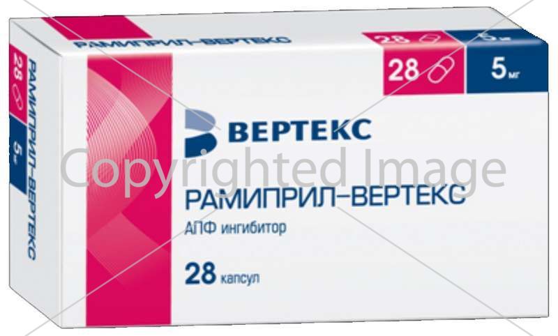 Производит Рамиприл-вертекс 5мг 28 шт капсулы компания Вертекс АО. Само производство расположено в стране Россия.