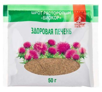«Шрот розторопші «Біокор», 100 г – ефективний засіб для підтримки функцій печінки, жовчовивідних шляхів та шлунково-кишкового тракту. Шрот розторопші покращує обмінні процеси у печінці, підвищуючи її стійкість до несприятливих умов; прискорює відновлення клітин печінки після її пошкоджень (вплив алкоголю, канцерогенів, перекисів жирів, консервантів, барвників, які містяться у продуктах харчування) та інфекційних захворювань; перешкоджає руйнуванню клітин печінки та стабілізує клітинні мембрани.