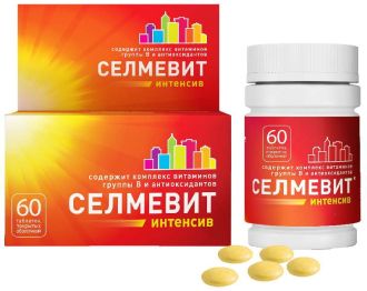 Комбінований полівітамінний препарат із мінералами. Селмевіт® Інтенсив містить комплекс вітамінів групи В та комплекс актіоксидантів. Сумісність компонентів у 1 таблетці забезпечена спеціальною технологією виробництва лікарського засобу.