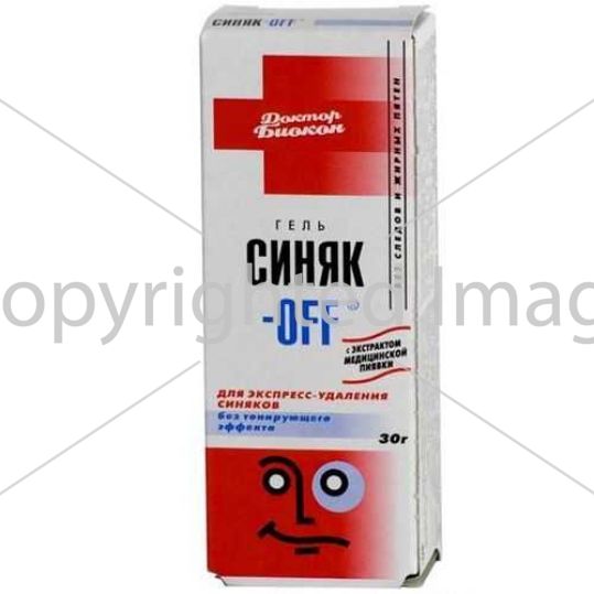Синяк-off – гель молочного кольору. Прискорює зникнення синців, розсмоктування синців, зменшує набряклість і припухлість після травм та операцій, сприяє зменшенню запалення шкіри.