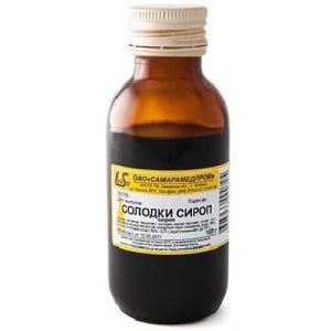 Активна речовина: солодкий екстракт густий із вмістом гліциризинової кислоти у перерахунку на суху речовину 19,0 % - 4 г. Допоміжні речовини: цукор (цукроза) -55 г, вода очищена -31 г, спирт етиловий 90% (етанол) - 10г.Флакон 100мл. ;