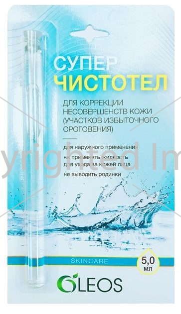 Косметическая жидкость «Суперчистотел» предназначена для коррекции несовершенств кожи (участков избыточного ороговения).