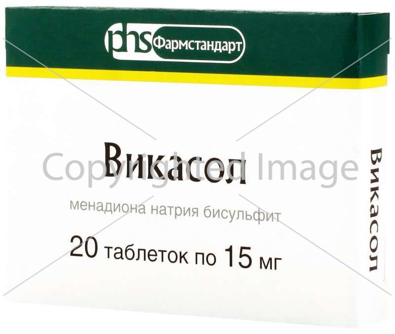 Викасол - синтетический водорастворимый аналог витамина K, способствует синтезу протромбина и проконвертина, повышает свертываемость крови за счет усиления синтеза II, VII, IX, X факторов свертывания. Обладает гемостатическим действием. Начинает действовать через 7-12 ч после приема внутрь.